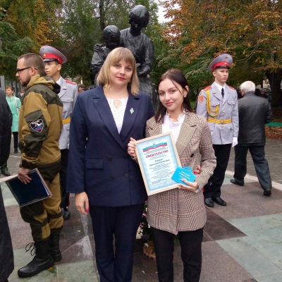 Собравшихся поздравил министр образования региона Михаил Орлов. Кадеты принесли цветы к памятнику Первой учительницы. За достижения в олимпиадах, спортивных соревнованиях и творческих конкурсах на Доску успеха молодежи занесли имена 28 школьников Саратовской области. Среди них на Доску Успеха занесена ученица 10 класса МОУ "СОШ им. Г. И. Марчука р.п. Духовницкое" Тюкаева Анастасия. Свидетельство о занесении на Доску Успеха молодежи Саратовской области и ценный подарок Насте вручил Председатель Общественного совета при Министерстве образования Саратовской области, председатель профессиональной Гильдии психологов и педагогов Саратовской области, первый помощник Уполномоченного по правам ребенка в Саратовской области Саратовский Сергей Владимирович. Поздравляем, так держать!